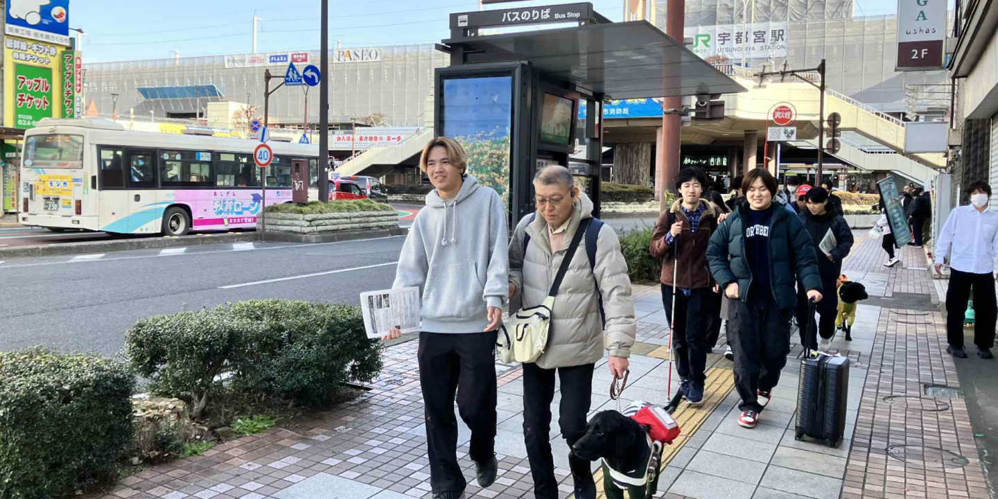 本ツアー(2025年12月13日実施)の実施にあたり、国際医療福祉大学 視機能療法学科の学生の皆さまに、ボランティアとしてご協力いただきました。将来、視機能の専門職を目指す学生ならではの視点と知識を活かし、参加者への丁寧な声掛けや状況確認、移動時のサポートなど、現場のさまざまな場面で重要な役割を担っていただきました。実際の体験の場に立ち会うことで、教室では得られない気づきや学びを深めると同時に、参加者にとっても安心して挑戦できる環境づくりにつながりました。